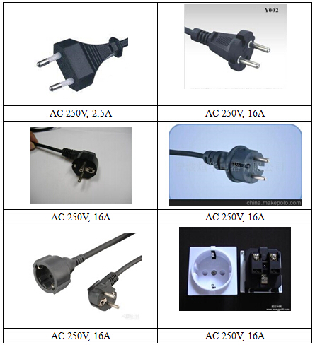 EN 50075 ( AC 250V,2.5A, 歐洲兩芯插頭)