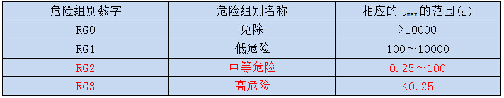 按照IEC 62471 的定義,當產品在相關評價位置產生上升到表1的某一tmax值時的危險分類。