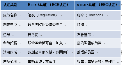 根據歐洲經濟委員會法規(ECE Regulation)和歐盟指令(EC Direction)規定,凡是需要進入其成員國市場的整車和車輛零部件,必須通過emark認證相應的測試和生產一致性檢查,并在產品上印刻其相應的E標志,否則產品不得在其市場進行銷售。