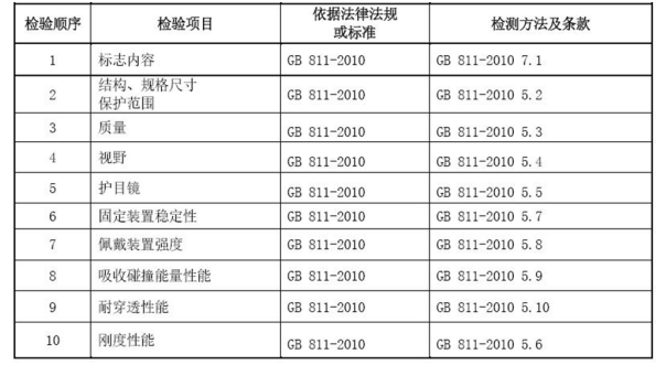 摩托車頭盔的CCC檢測標準 《GB 811-2010 摩托車乘員頭盔》,具體檢測項目如下: