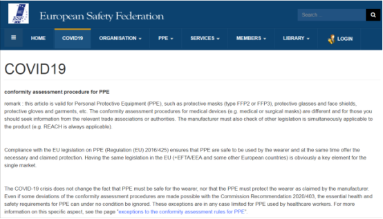 歐洲安全聯(lián)盟(European Safety Federation)在其官方網(wǎng)站上發(fā)布文章對當前一些個人防護用品(PPE) 的CE證書進行“打假”,同時還表示,防護口罩(FFP2或FFP3型)、防護眼鏡和面罩、防護手套和防護服裝等,除了要滿足當前聚焦的CE認證以外,也必須要滿足其他法律法規(guī),如REACH Regulation,這一點非常重要。