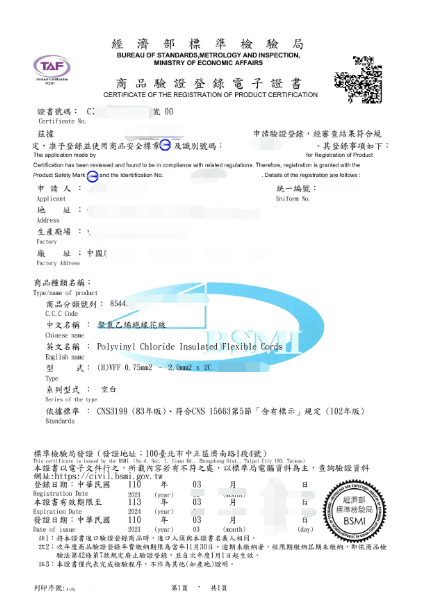 電線和插頭BSMI認證是臺灣強制性認證,需要在臺灣當地機構進行測試,證書三年有效,可延期一次(延3年)。電線首次申請需要工廠審查,獲證后每年進行一次工廠審查;插頭不需要做工廠審查。