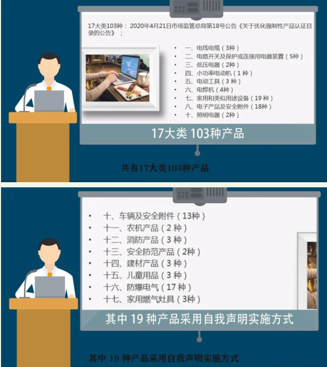 現(xiàn)如今,帶有“CCC”標志的強制性認證產品隨處可見,像洗衣機、空調器、電視機這樣的家電產品,手機、電腦等通訊信息產品,以及汽車、電動自行車、玩具、電線電纜、裝飾建筑材料等等在內共有17大類103種產品(其中19種產品采用自我聲明實施方式),都需要通過強制性產品認證。