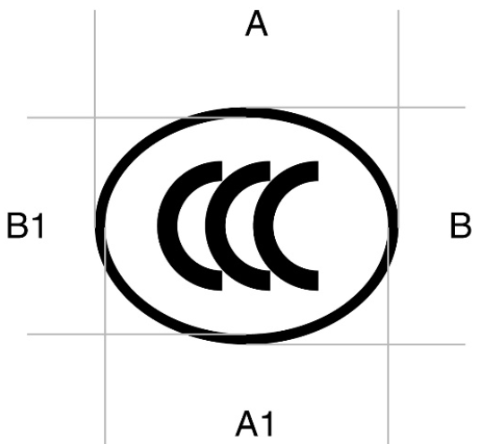 CCC標(biāo)志分為標(biāo)準(zhǔn)規(guī)格CCC標(biāo)志和非標(biāo)準(zhǔn)規(guī)格CCC標(biāo)志。CCC標(biāo)志橢圓型長短軸外直徑比例為8:6.3,具體圖形比例如圖一所示。