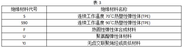 信號或控制線芯的絕緣材料應與主絕緣線芯材料一致見表2。所有絕緣線芯(可包括信號或控制線芯)應絞合在一起。信號或控制線芯可絞合為一個單元與其他線芯絞合,但不應位于線芯的中心位置。允許在絞合絕緣線芯時使用填充物。